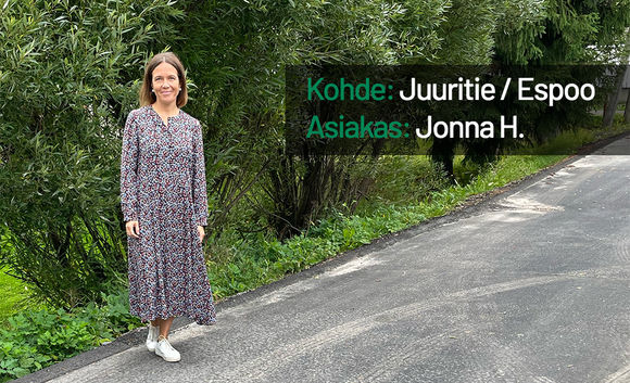Aloimme etsimään tekijää pihatyöprojektiin Googlen kautta ja soitinkin jo muutamaan yritykseen. Sitten löysimme Asfalttikulman kotisivut ja päätimme ottaa yhteyttä myös heihin. Puheluun vastasi Asfalttikulman päässä toimitusjohtaja, Matti Häkkilä, jonka kanssa juteltuani totesin, että puhelun aikana syntyi oikeastaan jo heti luottamus heihin ja sen jälkeen valinta projektin toteuttajasta oli aika selkeä kertoo Jonna.